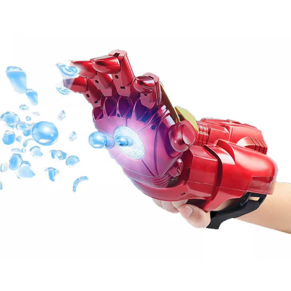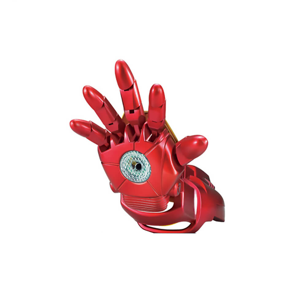 Стреляющая перчатка Железного человека Yoube JD637 подходит для взрослых и детей для игр, для косплея или фотосессий. Рука имеет подвижные пальцы и может стрелять пульками обриз. Перчатка визуально имитирует руку Железного человека из фильма Мстители. Она выполнена из пластика и оснащена эластичным ремешком с регулировкой длины. На внутренней части находится переключатель и рычаг, при нажатии на который рука супергероя начинает стрелять. При выстреле отверстие подсвечивается и издается звук мотора. Рука работает от встроенного аккумулятора, который заряжается через usb адаптер.