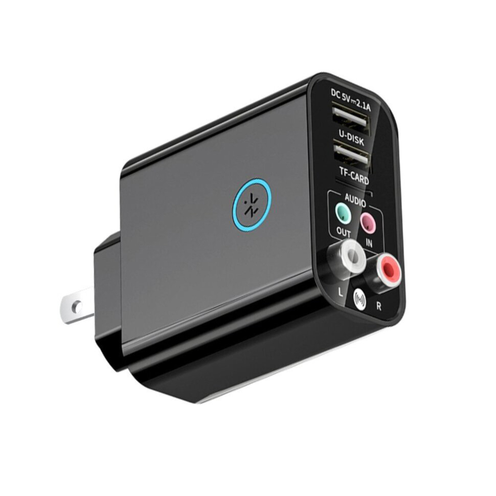 Аудио Bluetooth адаптер K6-OUGI приемник-передатчик применяется для превращения любого аудиоприбора в беспроводные колонки. Также передатчик на колонке может использоваться для подключения наушников к телевизору, стереосистеме или плееру без Bluetooth. На корпусе переходника есть соответствующие порты и разъемы для подключения устройств. Стерео приёмник изготовлен из прочного пластика. Управляется с пульта в радиусе 10 метров. Также аудио адаптер может воспроизводить музыку с карты памяти – для этого есть соответствующий слот на корпусе. Питается от сети 110-220В.