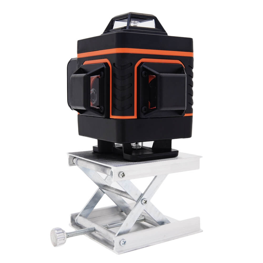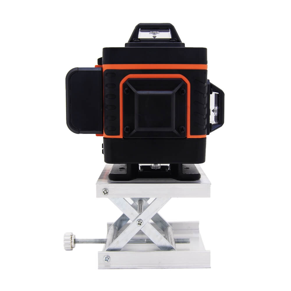 Лазерный нивелир оснащен четырьмя линзами с четырьмя зелеными светодиодами в каждой. Может осуществлять разметку в четырех плоскостях. Отклонение от вертикали и горизонтали не превышает 0,2 мм на 1 метр. Рабочая дистанция проецирования линий - до 10 метров. Корпус прибора оборудован пузырьковым уровнем для грубой настройки и резьбой ¼ дюйма для крепления к штативу. Питается устройство от литиевой батареи. Время работы нивелира - от 4 до 8 часов, в зависимости от включенных плоскостей.