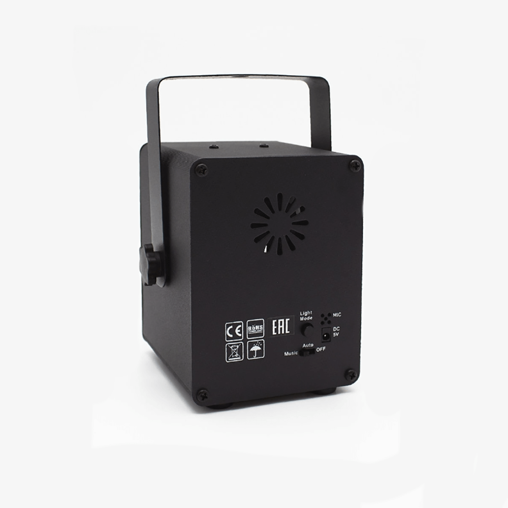 Лазерный проектор - дискошар музыкальный Party Light Box с пультом (RGB laser, LED, 120°) – полезное оборудование для дискотеки или вечеринки. Дискошар проектор светодиодный оснащен чувствительным датчиком звука, который улавливает мелодии и подстраивает под них подсветку в автоматическом режиме. Также режим можно выставить вручную с пульта управления. Светодиодный LED диско шар оснащен двумя мощными лазерами с углом наклона 120 градусов, которые охватывают помещение площадью до 50 кв.м. Световая установка-диско-шар выполнена из металла, поэтому корпусу не страшны падения и удары. На корпусе есть удобная ручка, за которую диско-шар можно подвесить или переносить.