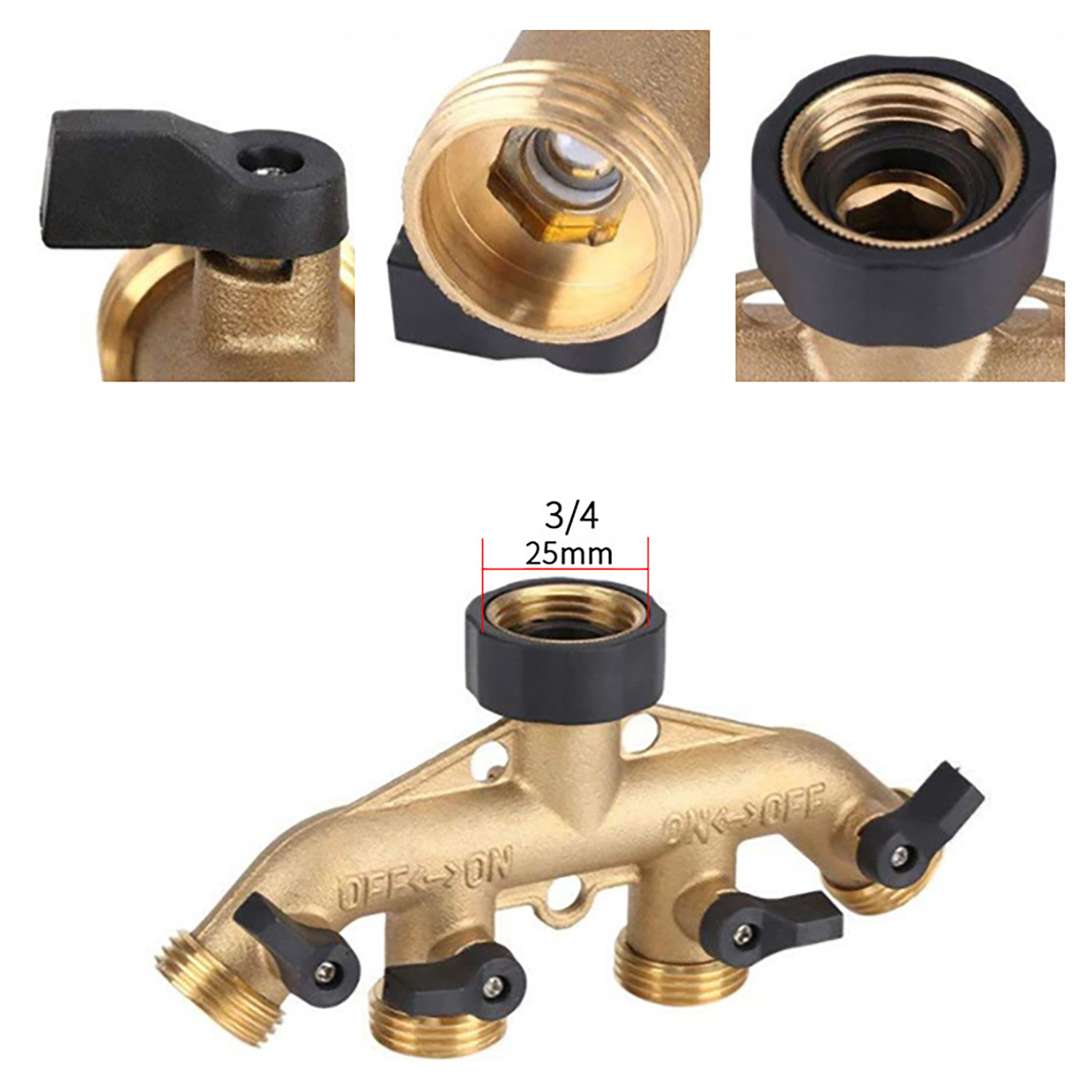 4-ходовой сплиттер соединитель для садового шланга 3/4 дюйма медный